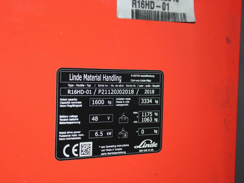 Hersteller: Linde Typ: R 16 HD-01 1120 Bauart: Schubmaststapler Antriebsart: Elektro Tragkraft: 1600 kg Baujahr: 2018 Betriebsstunden: 6766 |
