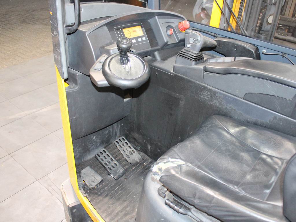 Masttyp: Triplex Hubhöhe: 6200 mm Freihub: 1960 mm Gabellänge: 800 mm Reifen vorne: Superelastik Reifen vorne Größe: 2 x 180/60-10 Reifen vorne Zustand: 80 - 100% Reifen hinten: Superelastik Reifen hinten Größe: 1 x 200/50-10 Reifen hinten Zustand: 0 - 20% |