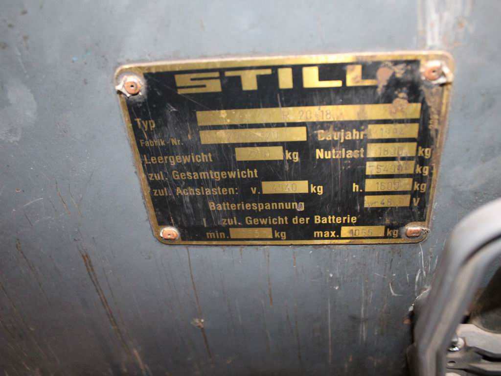 Hersteller: Still Typ: R 20-18 2004 Bauart: Elektro 3 Rad-Stapler Antriebsart: Elektro Tragkraft: 1800 kg Baujahr: 1994 Betriebsstunden: 16704 |